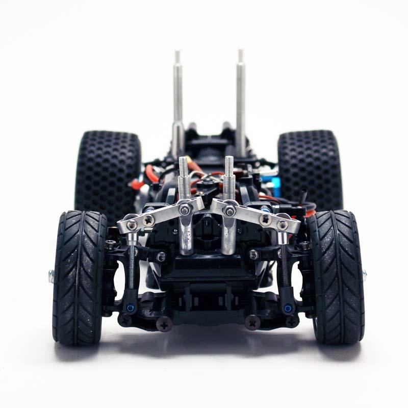 M05 ProformI use the Tamiya M05 chassis on a number projects because it's so versital. On this project I decided to go with a longer wheel base, and convert it to rear wheel drive. Converting to rear wheel drive was pretty straight forward using stock parts. For the front suspension I made a cantelever set up with the shocks mounted inside the chassis. For the rear, I replaced the stock rear hub carriers with 0 degree 3Racing ones. The aluminum wheels were made with positive offset to move them in as far as possible. The rear axles were also shortened. |