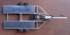 Snowcat tilt trailerThis is a tilt trailer to haul the snowcats. Built as a 5th wheel trailer. I used a Lesu electric trailer foot to raise and lower the nose. I modified a Lesu mechanical tilt mechanism powered by a 360 degree continuous servo that tilts the bed. Also has a power winch. The tilt mechanism and winch are controlled by a 6 channel transmitter. The power foot is controlled be a dpdt switch mounted on the tractor. |